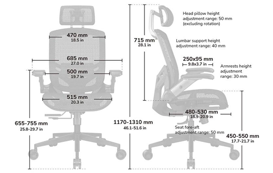 Apoio lombar e profundidade do assento ajustáveis com precisão.