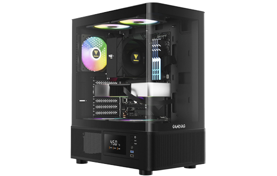 A série ATLAS E2 CG está disponível nas edições preta e branca. O gabinete possui saídas de ar perfuradas com três ventoinhas ARGB integradas para fluxo de ar ideal e um monitor personalizável para informações do sistema em tempo real. Aproveite o benefício do design curvo de vidro temperado sem emendas, proporcionando visuais impressionantes da sua montagem de todos os ângulos.