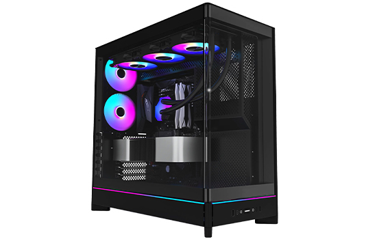 Definindo o padrão moderno para a estética de gabinetes de PC, o HS02 apresenta painéis de vidro cristalinos e um layout minimalista, criando o cenário ideal para exibir o gabinete dos seus sonhos. Com opções de montagem flexíveis e um design elegante, ele transforma qualquer configuração em uma verdadeira obra de arte.
