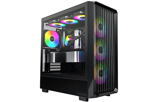 Pré-instalado com 4 ventoinhas ARGB, com 25 modos de iluminação integrados ao toque de um botão ou controle total com a placa-mãe proporcionando resfriamento potente e iluminação vibrante.