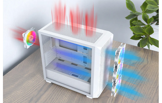 Projetado como o irmão compacto do X5, o X5M traz o mesmo espírito gamer em um formato M-ATX menor. Ele herda a estética arrojada, a ampla compatibilidade e o suporte a ventoinhas ARGB, oferecendo alto potencial de desempenho em um tamanho amigável.