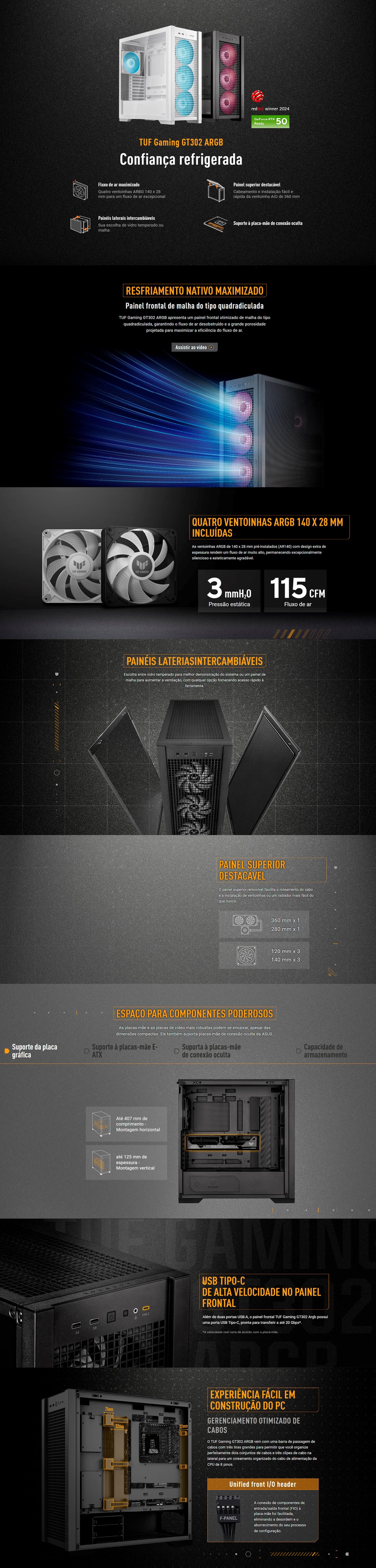 Suporta fontes de alimentação ATX padrão de até 180 mm de comprimento