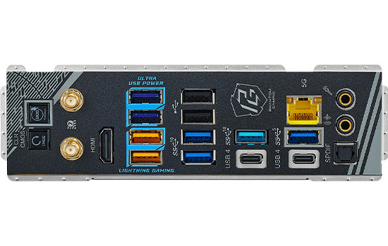 5 x Portas USB 3.2 Gen2 Tipo-A (10 Gb/s) (USB32_12 are Portas de Jogos Lightning.)