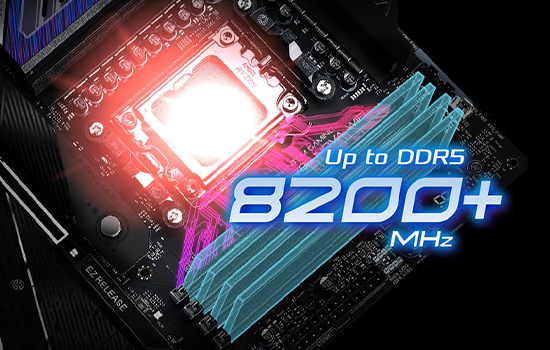 Suporta DDR5 ECC/non-ECC, un-buffered memory up to 8200+(OC)*