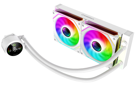 GameMax IceBurg 240V Digital WH, Cooler de CPU líquido, 240mm, Ventoinhas de bomba ARGB endereçáveis, 245W TDP, Refrigerador de água AIO