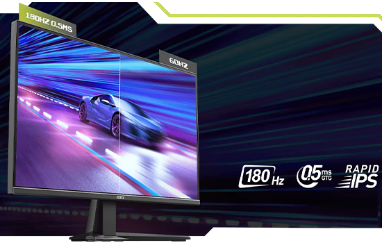 Equipado com uma taxa de atualização de 180Hz e um tempo de resposta de 0,5ms (GtG, Mín.), este monitor é ideal para jogos de ritmo acelerado, como jogos de tiro em primeira pessoa, jogos de luta, simuladores de corrida, estratégia em tempo real e esportes.