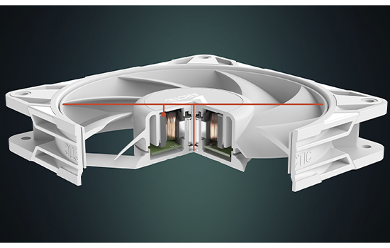 Design revisado das pás do ventilador para um equilíbrio ideal entre desempenho e funcionamento suave.