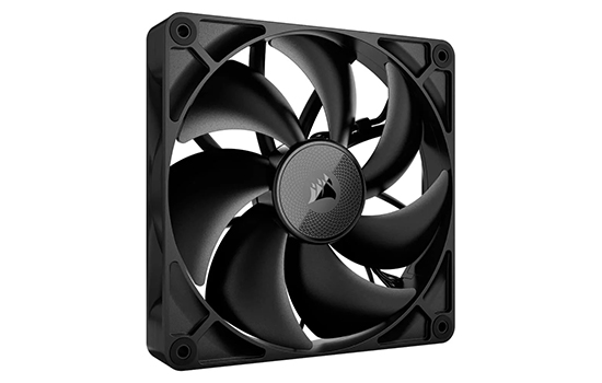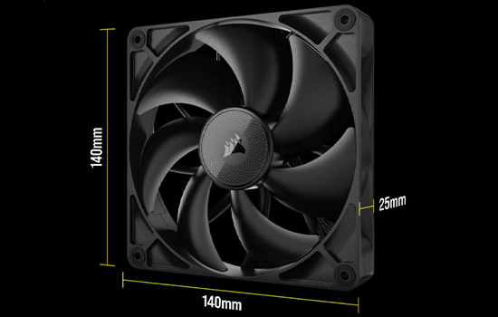 As ventoinhas PWM CORSAIR RX140 ajudam na circulação de ar entre obstruções usando alta pressão estática e velocidade controlada por PWM, construídas com polímero de cristal líquido premium e tecnologia CORSAIR AirGuide.