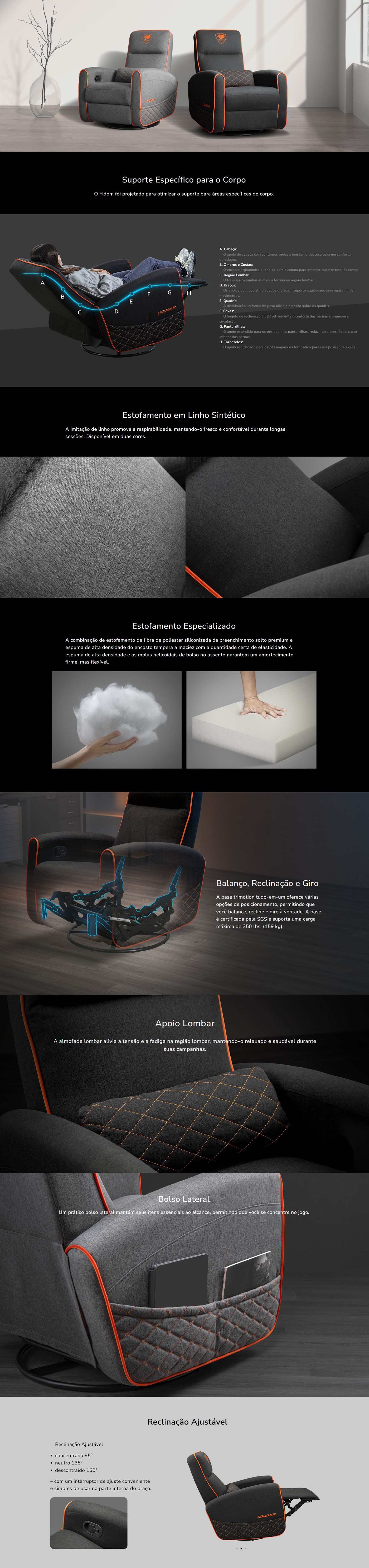 Poltrona Gamer Cougar Fidom, Reclinável, Tecido, Cinza e Laranja, 3MFDFGRO.0001